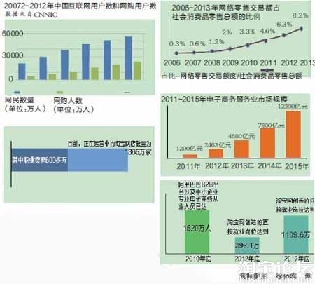 来自中国电子商务研究发布的《2012中国电子商务人才状况报告》显示,2011年中国电子商务企业直接从业人数将近214万人,而到了2012年底,光是淘宝网创造的直接就业岗位就达到392.1万人,间接就业岗位更是高达1109.6万人。